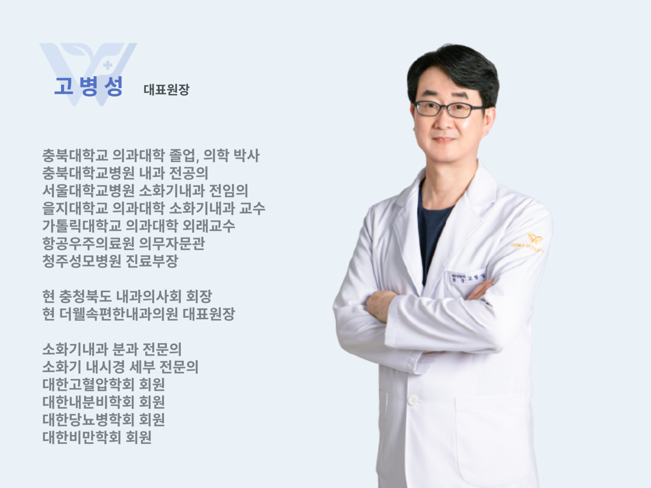 안녕하세요. 더웰속편한내과의원 원장 고병성입니다.